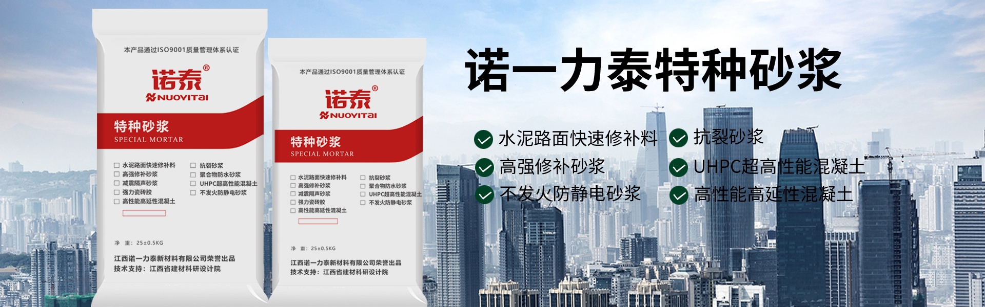 江西諾一力泰新材料有限公司位于江西宜春奉新縣,是專業從事灌漿料、水泥路面修補砂漿、抗裂砂漿防水砂漿保溫砂漿隔聲砂漿、粘結砂漿等砂漿系列產品生產銷售的廠家。
